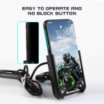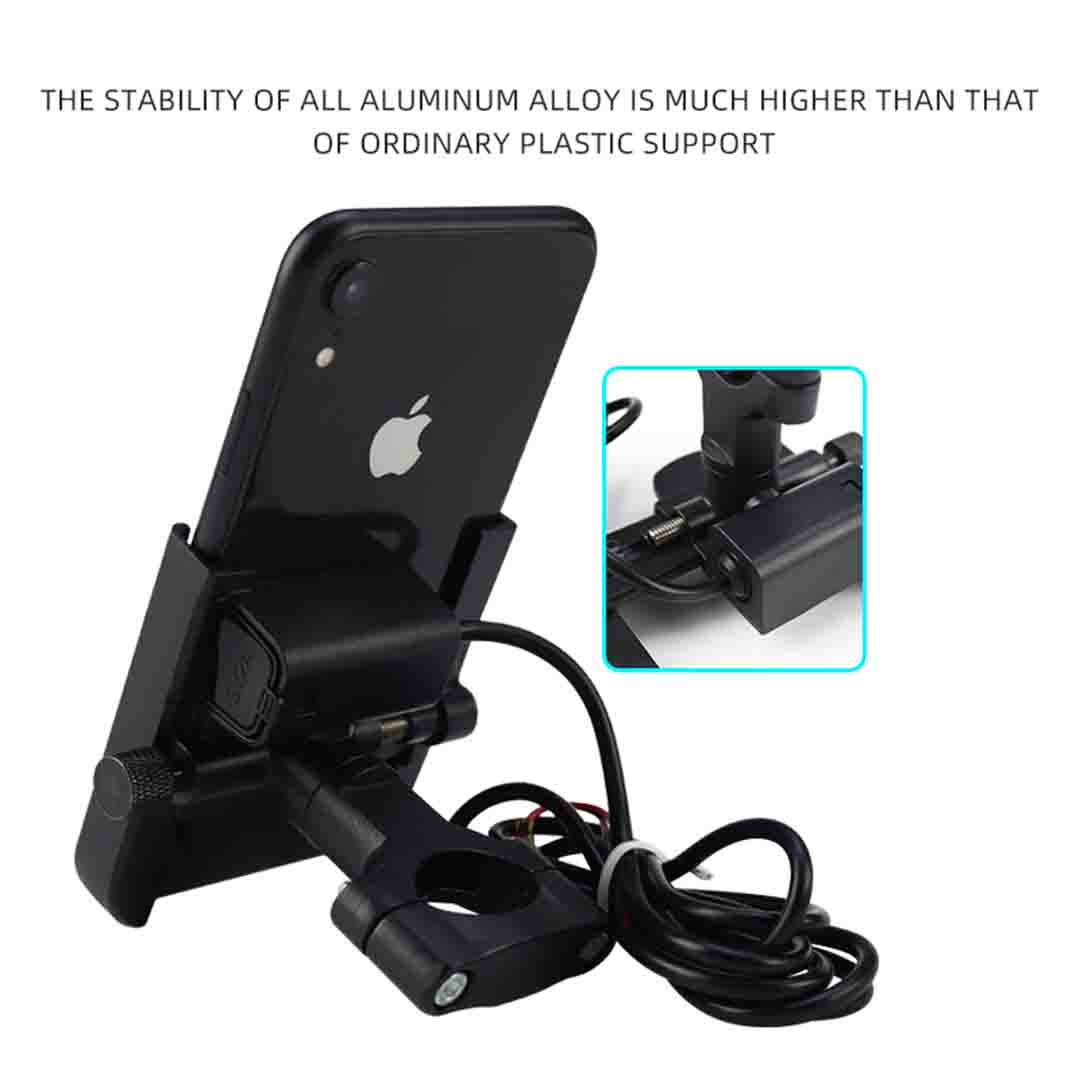 - [ Firm and 100% Reliable ] : Aluminium mobile phone rack + mechanical lock by screw + rod fixing ring locked by long scews on handlebar to make your phone 100% steady and anti-shake even when riding on rocky roads; IP66 waterproof plastic cover on USB makes riding easy and safe in light rain.